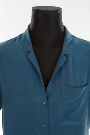 Blouse de seconde main Des Petits Hauts bleu. Matière principale soie. Taille 36. Collection Femme. Bon État. Référence : 035150030.
