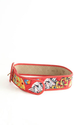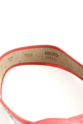 Ceinture de seconde main Kenzo rouge. Matière principale cuir. Taille S. Longueur : 79cm. Collection Femme. Très Bon État. Référence : 017430043.