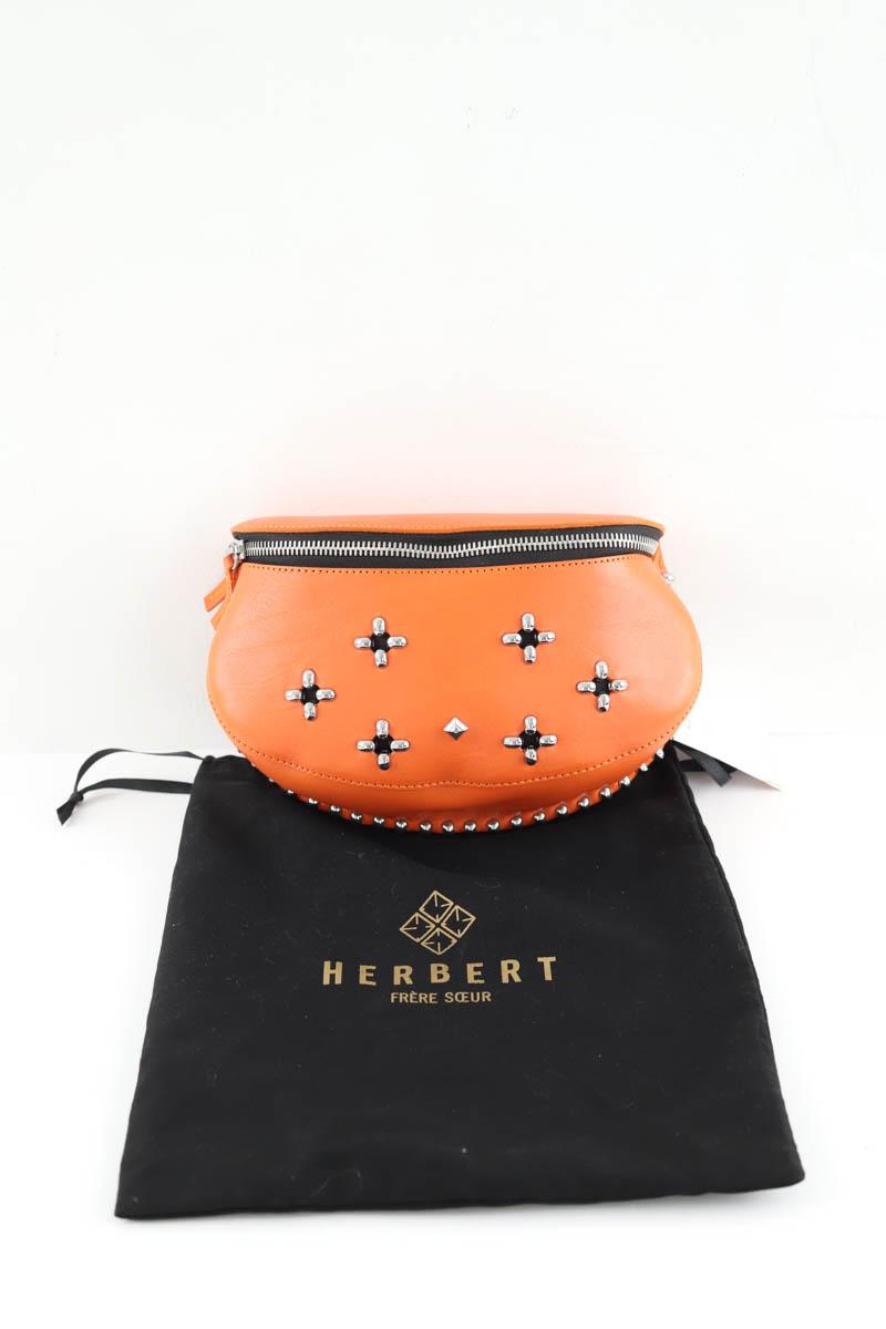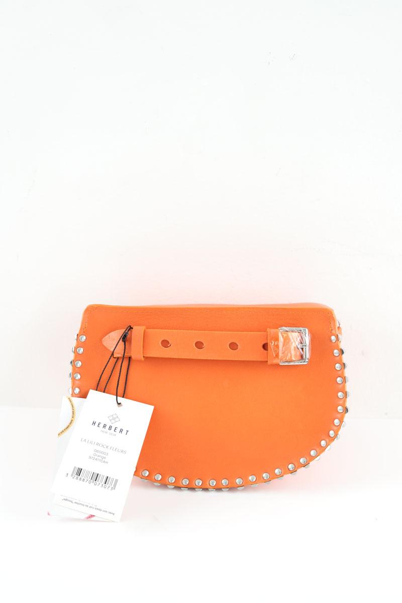 Mini sac Femme Herbert Frère Soeur - Modèle : LA LILI ROCK FLEURS, en cuir, coloris orange.
