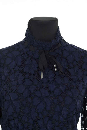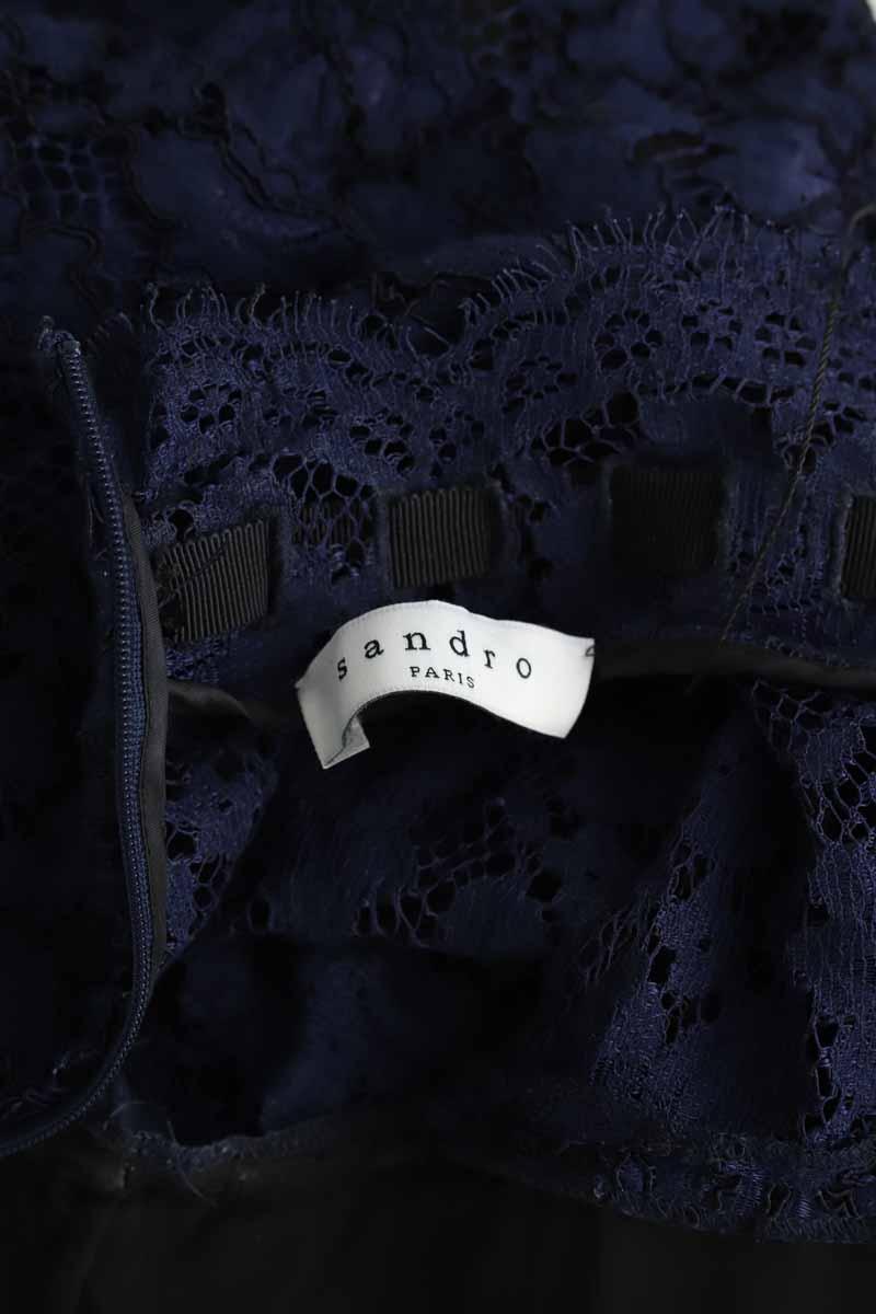 Robe de seconde main Sandro bleu. Matière principale polyester. Taille 2. Longueur : 87cm. Épaules : 41cm. Aisselles : 46cm. Collection Femme. Très Bon État. Référence : 013790004.