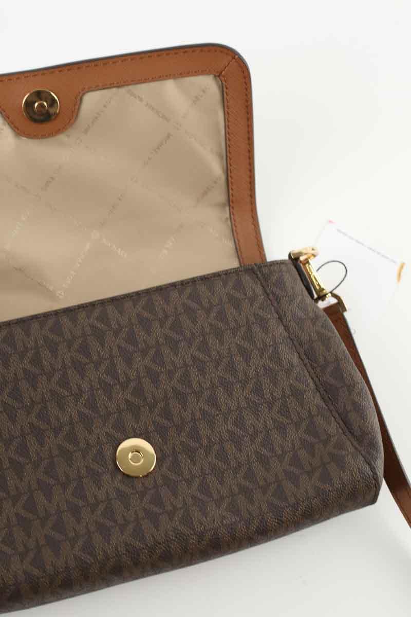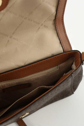 Sac à bandoulière de seconde main Michael Kors marron. Matière principale synthétique. Longueur : 21cm. Largeur : 4cm. Hauteur : 14cm. Longueur bandoulière : 110cm. Collection Femme. Jamais Porté Avec Étiquette. Prix boutique : 225€. Référence : 028320061.