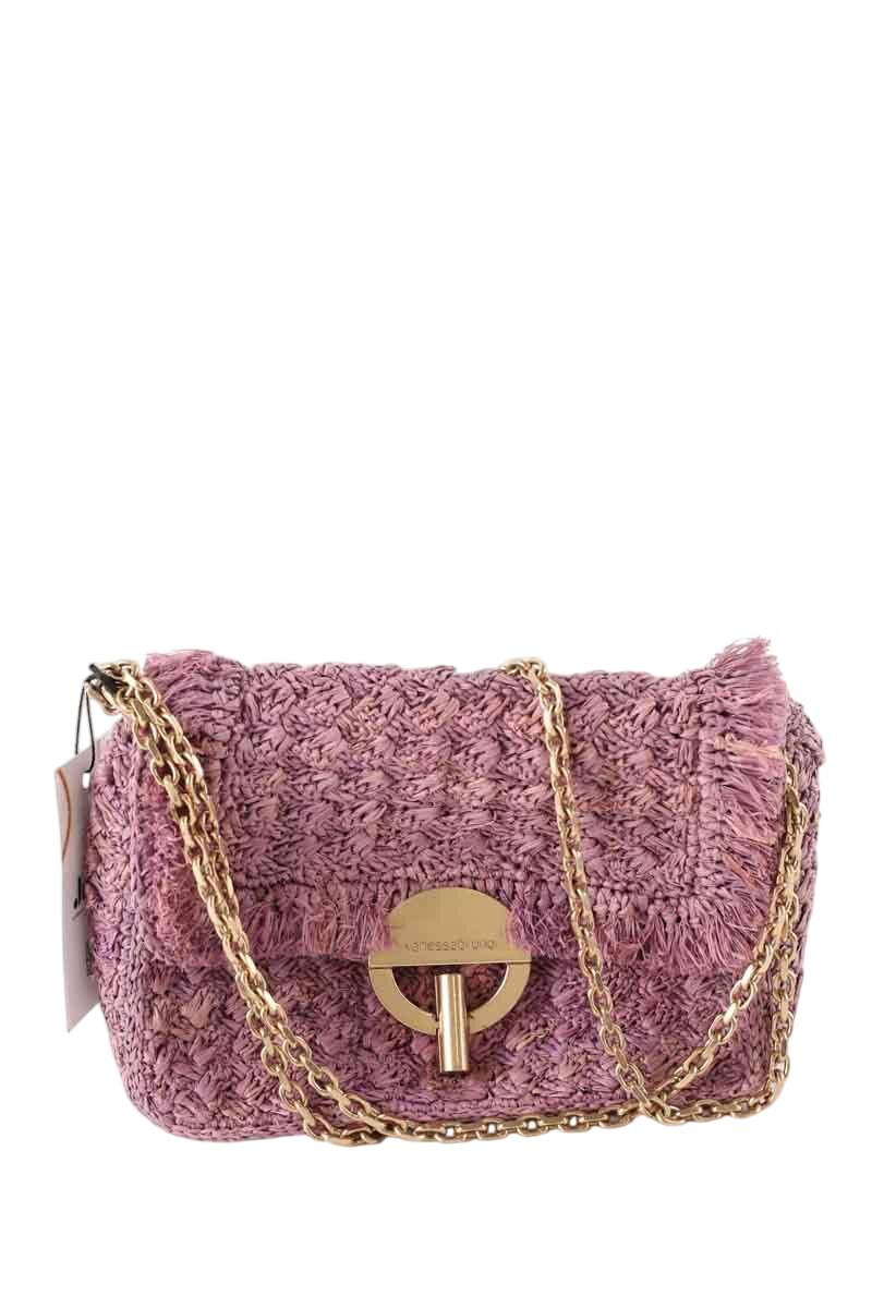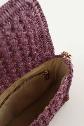 Sac à bandoulière de seconde main Vanessa Bruno Moon violet. Matière principale osier. Longueur : 25cm. Largeur : 7cm. Hauteur : 18cm. Collection Femme. Bon État. Légères traces usures. Référence : 033620063.