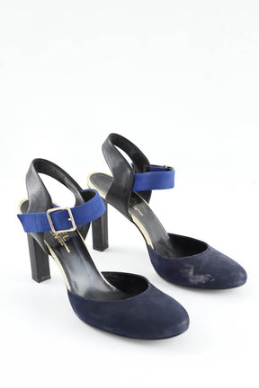 Talons Femme Michel Vivien, de taille 39, en cuir, coloris bleu.