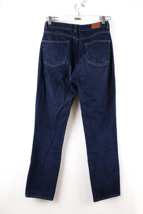 Jean droit de seconde main Des Petits Hauts bleu. Matière principale coton. Taille 36. Taille étiquette : 26. Longueur : 106cm. Collection Femme. Très Bon État. Taille mi-haute. Référence : 036330001.