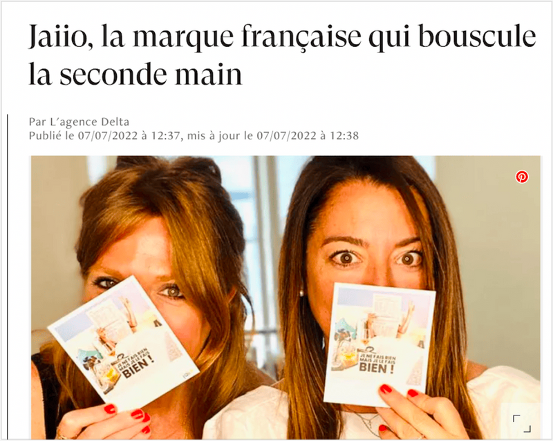 Un joli succès. Cinq ans après son lancement, Jaiio profite de l'enthousiasme de ses acheteurs et vendeurs. L'entreprise fondée par Aurélie Baranes et Joy Ignaczak dans une chambre de bonne parisienne emploie aujourd'hui une trentaine de personnes. « Au départ, nous vendions des pièces de notre propre dressing », se souviennent-elles. Une réussite pour ces deux amies d'enfance, passionnées (entre autres) de mode.
