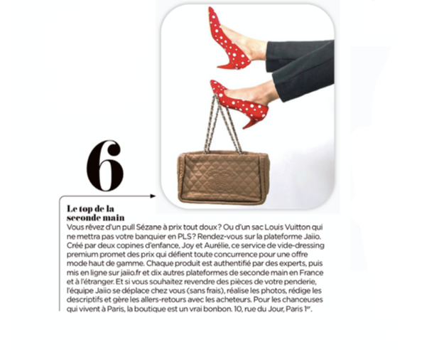 "Chez Jaiio, la vendeuse est reine ! Ce dépôt-vente de luxe vient à domicile récupérer les articles avant de les photographier et de les présenter sur son site Internet. Pour les acheteuses, c’est aussi facile. Un coup de cœur ? En quelques clics, l’article est à elle. (…)"
