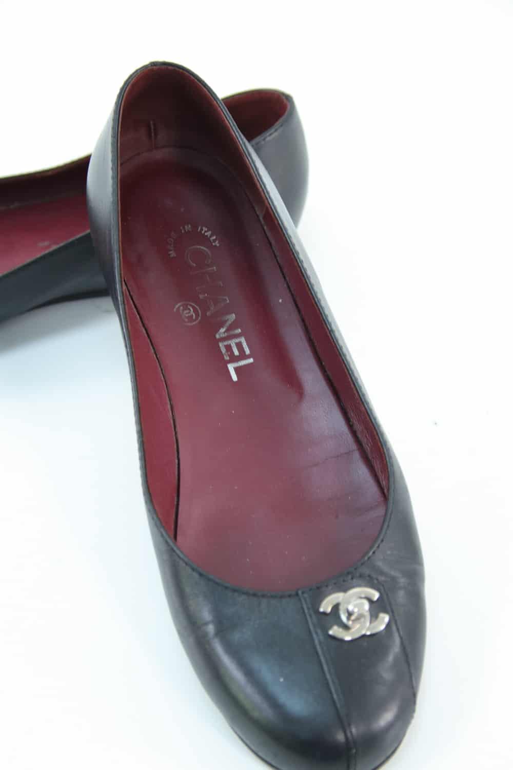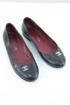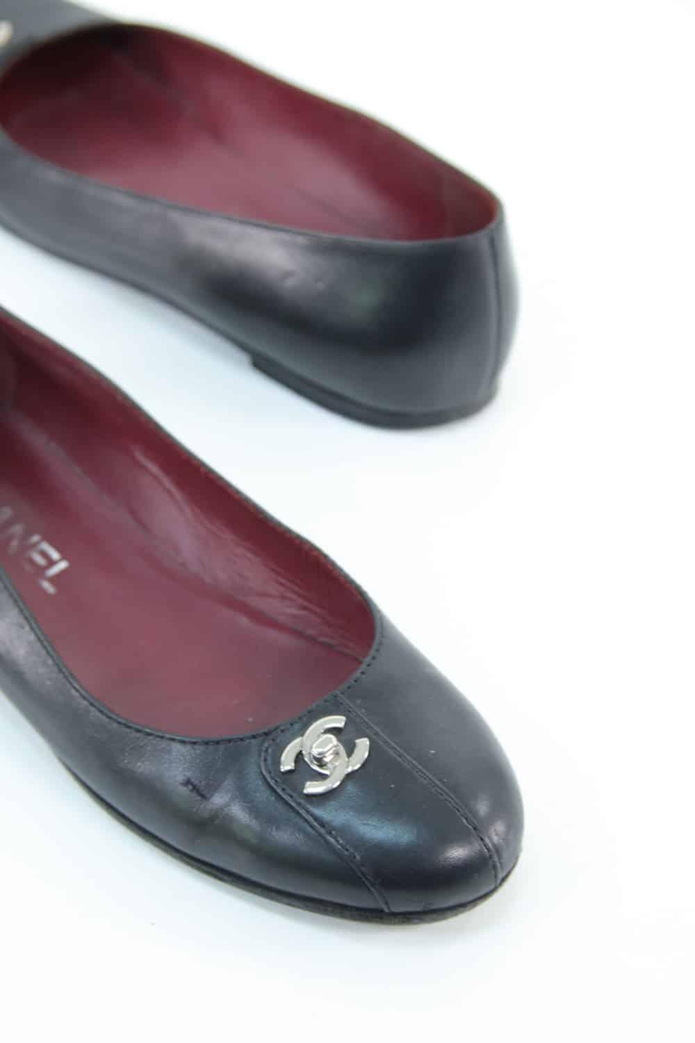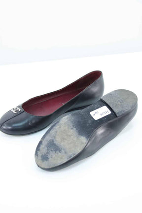 Ballerines - Traces d'usure de seconde main Chanel noir cuir. Taille 40. Collection Femme. Très Bon État. Référence : 312075.