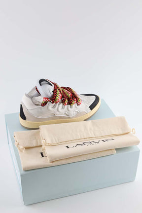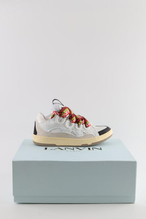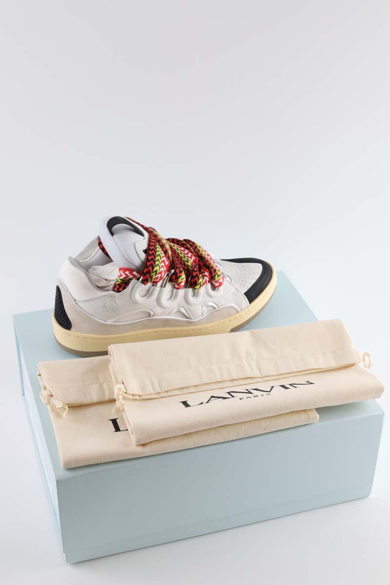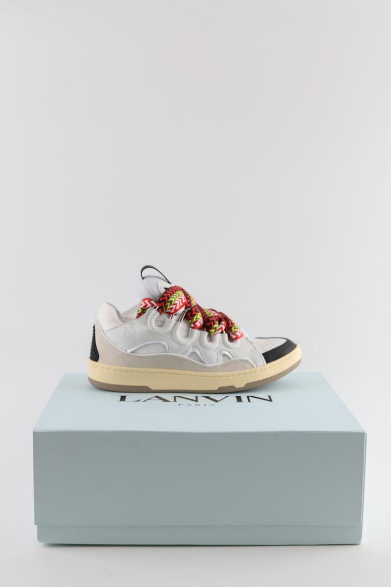 Baskets de seconde main Lanvin CURB gris. Matière principale cuir. Taille 42. Avec Pochon. Avec Boîte. Collection Homme. Jamais Porté. Prix boutique : 790€. La Curb est une sneaker inspirée des années 90, au design affirmé et aux volumes exagérés. Réalisé en cuir de veau nappa, suède et mesh, ce modèle au montage élaboré se caractérise par son confort ultime grâce à sa forme ronde, sa languette rembourrée et ses œillets métallisés.. Référence : 030470233.