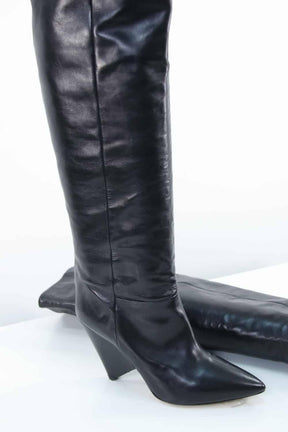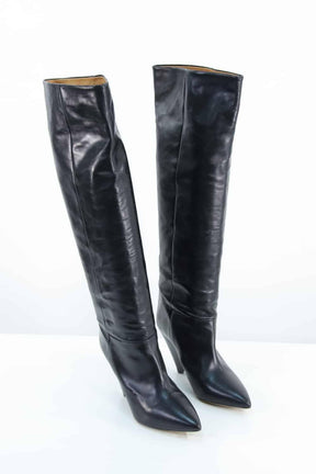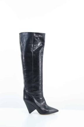 Bottes - Modèle Lokyo - Tige 55cm - Talon 10cm de seconde main Isabel Marant noir cuir. Taille 36. Collection Femme. Très Bon État. Référence : 631012.