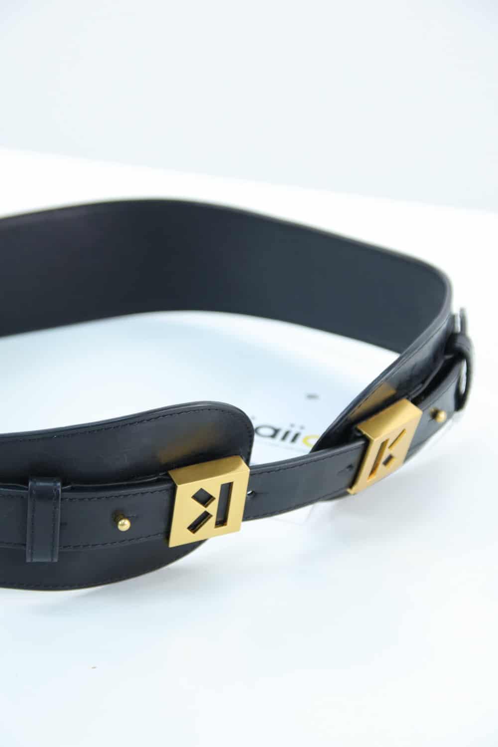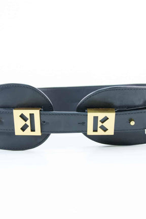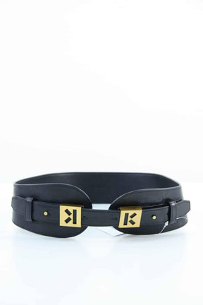 Ceinture - Largeur 5cm - Longueur 67cm de seconde main Kenzo noir cuir. Taille 34. Collection Femme. Bon État. Référence : 498336.