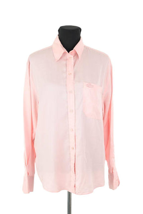 Chemise de seconde main Lacoste rose. Matière principale synthétique. Taille L. Collection Femme. Très Bon État. Référence : 005780223.