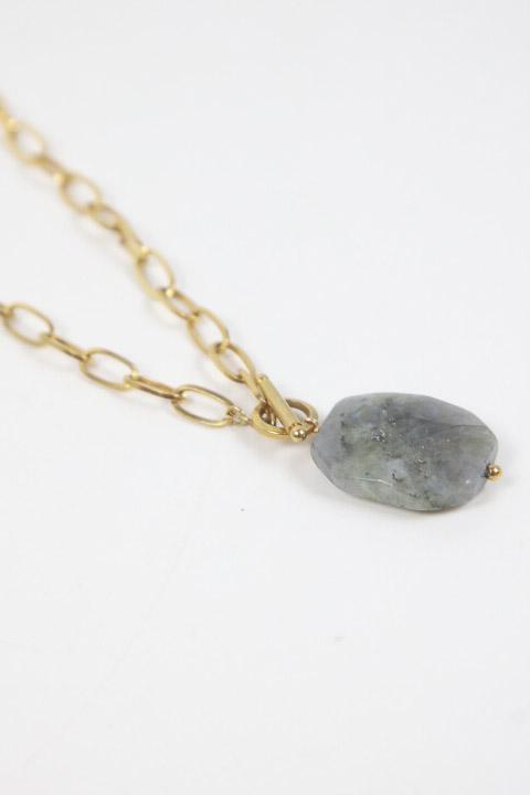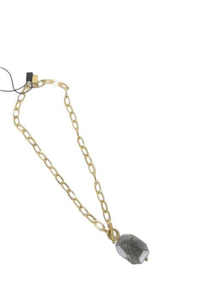 Collier de seconde main Habaha Paris doré 100% métal. Collection Femme. Bon État. Prix boutique : 28€. Modelé Mirabella - Composition Métal Steel - Turquoise Africaine. Référence : 12291163.
