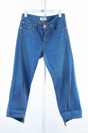 Jean - Légèrement usé au niveau des cuisses - Etiquette composition manquante - Taille 40cm - Fourche 27cm - Longueur 90cm de seconde main Lanvin bleu coton. Taille 39. Collection Femme. Bon État. Référence : 603015.