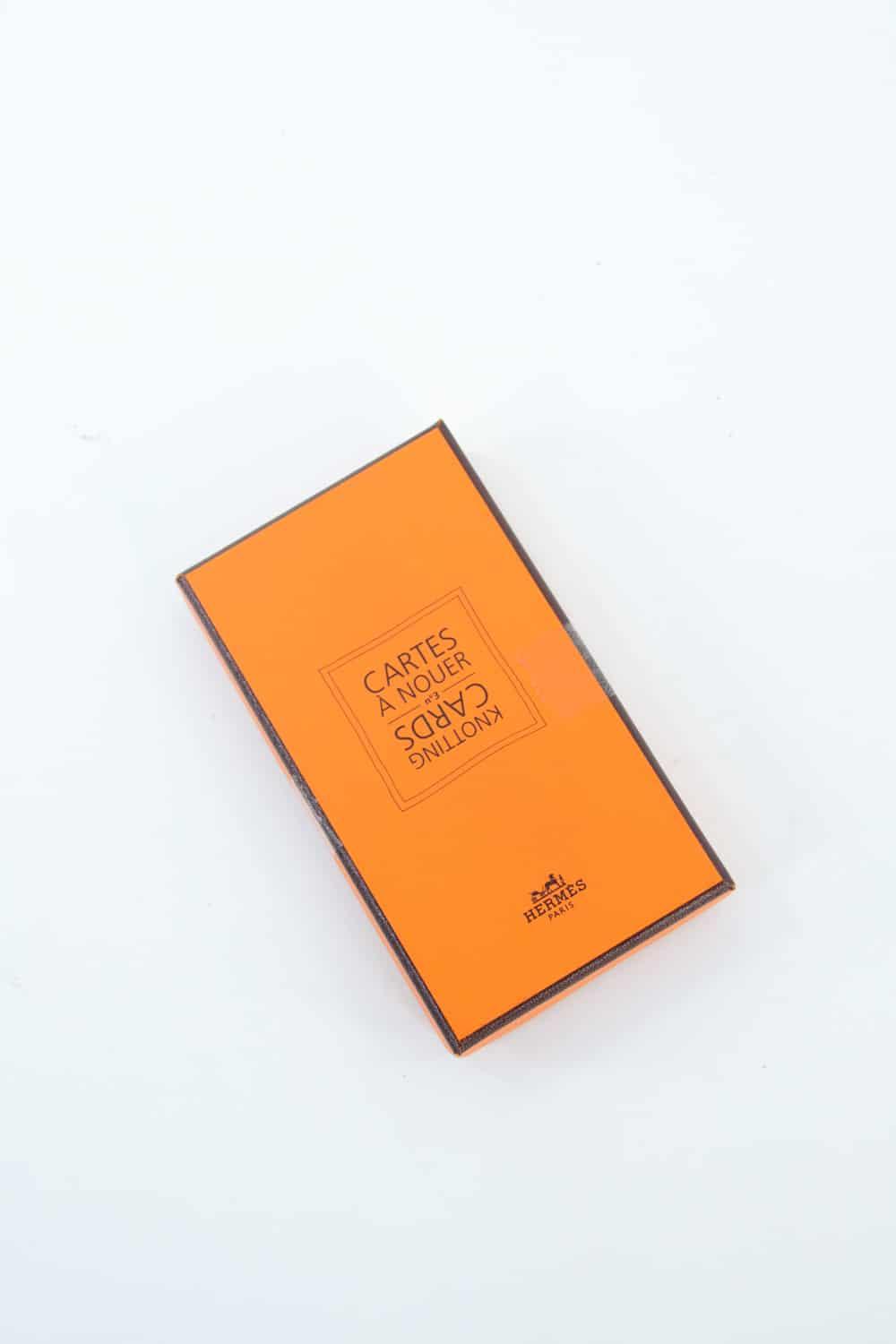 Cartes à nouerr Hermès - Dans leur boite - Première carte légèrement abîmée de seconde main Hermès orange. Collection Femme. Très Bon État. Référence : 14023.