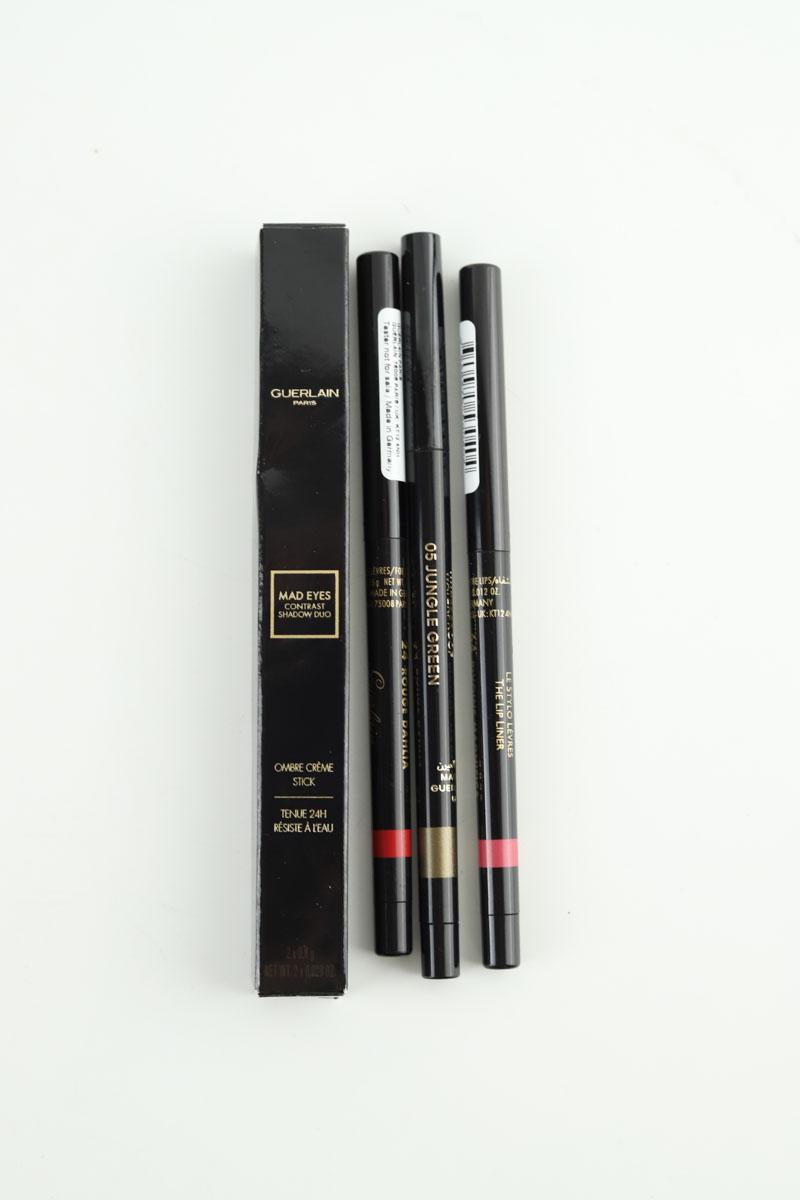 Lot de Maquillage de seconde main Guerlain noir. Collection Femme. Jamais Porté Avec Étiquette. Caryon - le stylo lèvres 24 rouge dahlia et 64 pivoine magnifica - ombre crème stick -. Référence : 029170014.