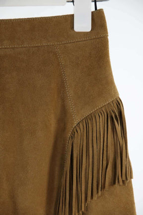 Jupe en cuir avec frange - Taille 32cm - Longueur 42cm de seconde main Yves Saint Laurent beige 100% cuir. Taille 36. Collection Femme. Très Bon État. Référence : 748052.