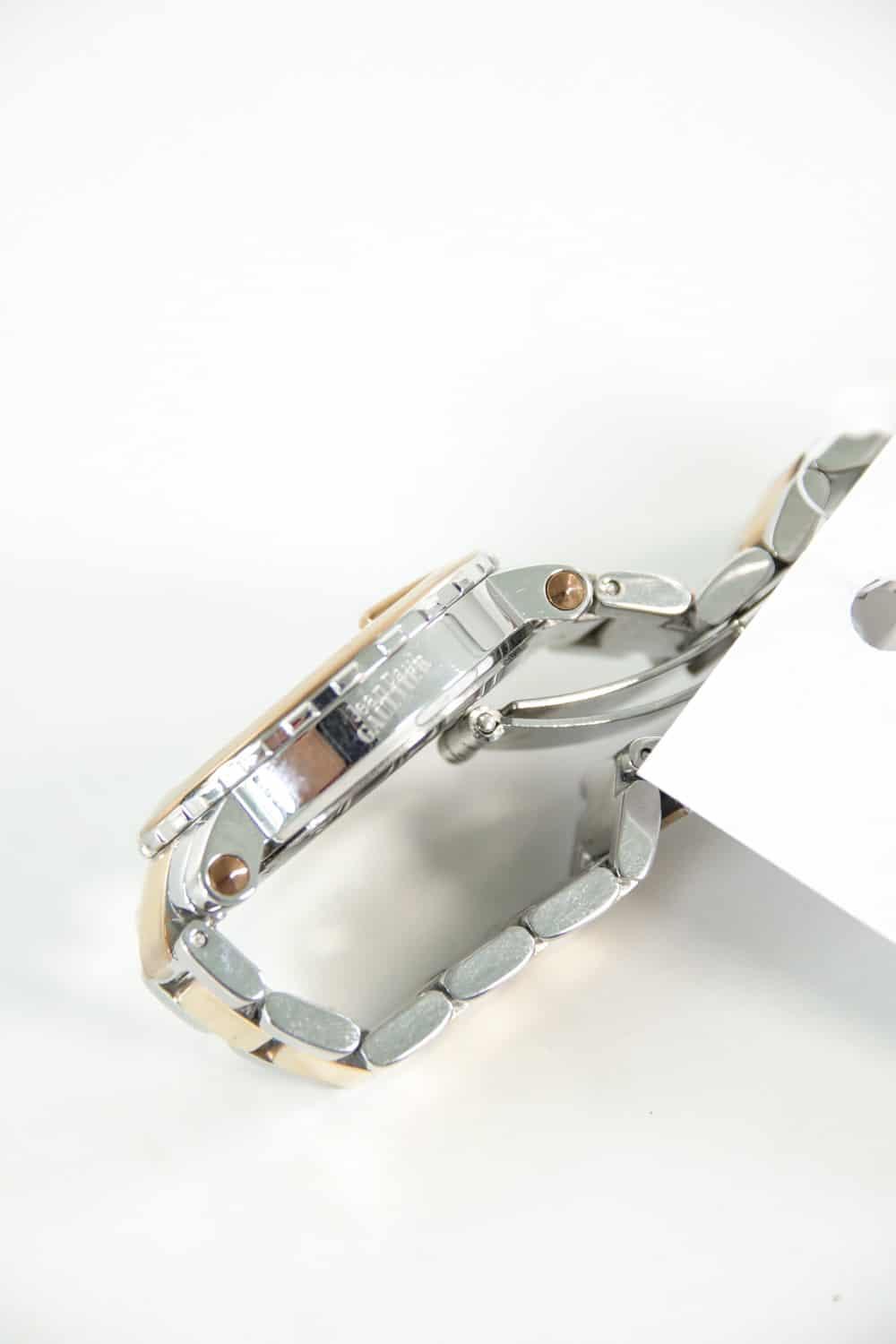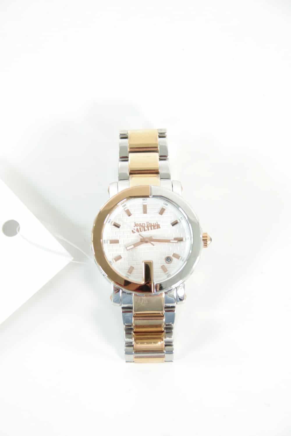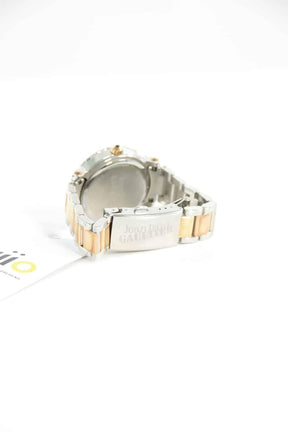 Montre bicolore à trois aiguilles de seconde main Jean Paul Gaultier argent métal. Taille 2. Très Bon État. Référence : 507046.