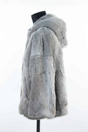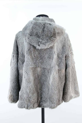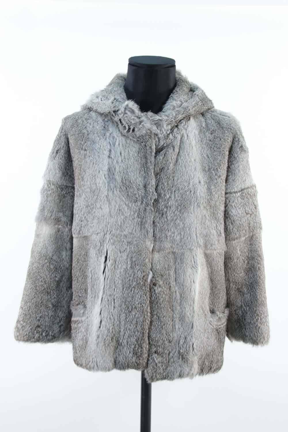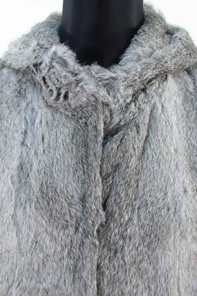 Manteau à capuche - Fourrure de lapin - Manche 55cm - Longueur 64cm de seconde main Bash gris fourrure. Taille unique. Collection Femme. Très Bon État. Référence : 631050.
