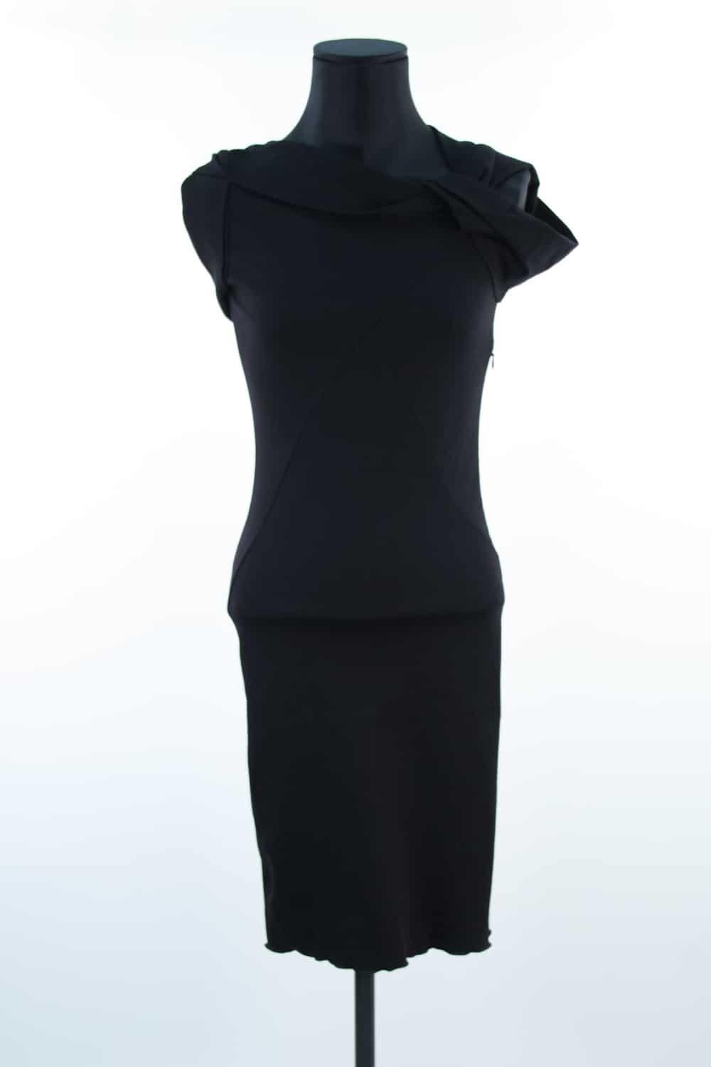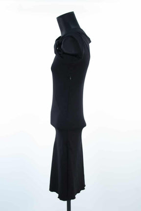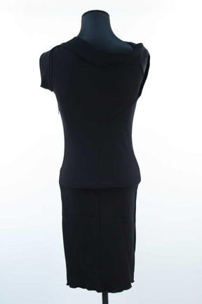 Robe mi-longue - Étiquette de composition manquante - Manches courtes - Longueur 88cm de seconde main Emporio Armani noir. Taille XS. Collection Femme. Très Bon État. Référence : 635002.