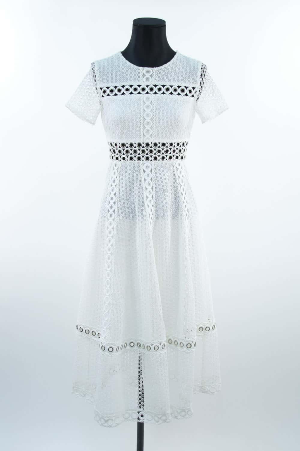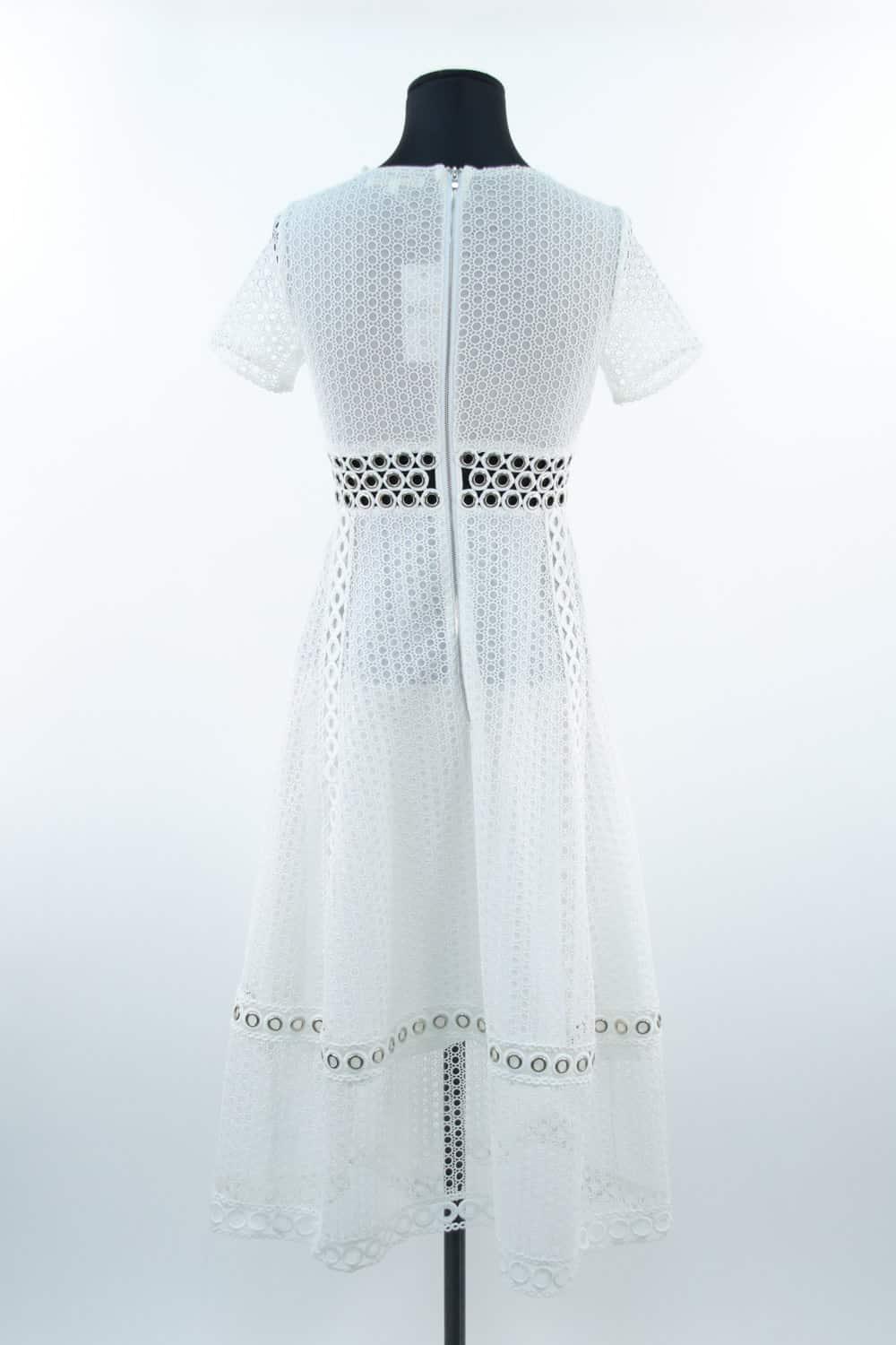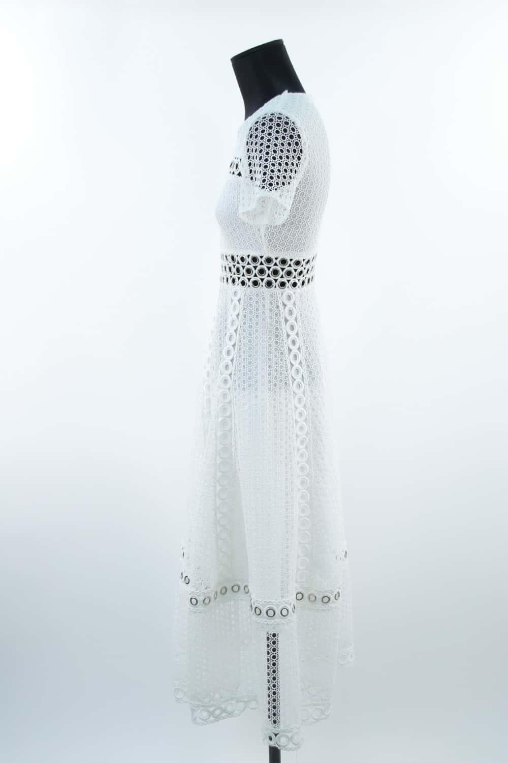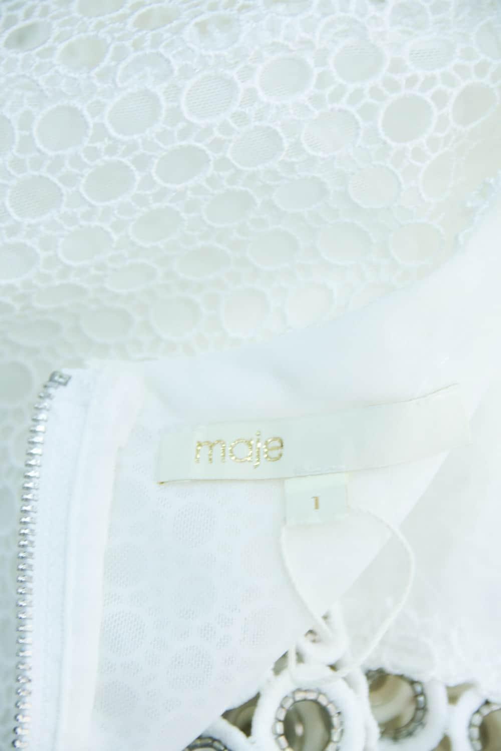 Robe longue - Manches courtes - Épaules 36cm - Aisselles 42cm - Longueur 123cm de seconde main Maje blanc 100% polyester. Taille 38. Collection Femme. Très Bon État. Référence : 621002.