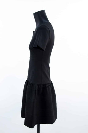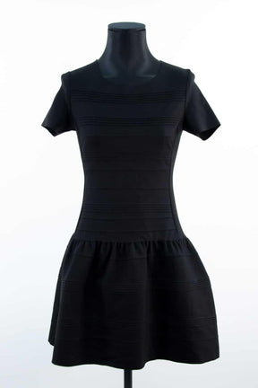 Robe courte - Manches courtes - Épaules 34cm - Aisselles 35cm - Longueur 85cm de seconde main Maje noir 60% viscose 35% polyamide 5% élasthanne. Taille 42. Collection Femme. Très Bon État. Référence : 330025.