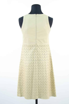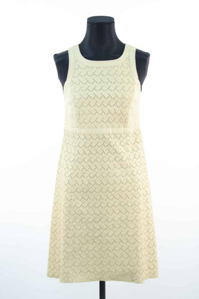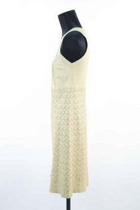 Robe mi-longue - Sans manches - Aisselles 40cm - Longueur 93cm de seconde main Tara Jarmon jaune cuir. Taille 0. Collection Femme. Très Bon État. Référence : 621001.