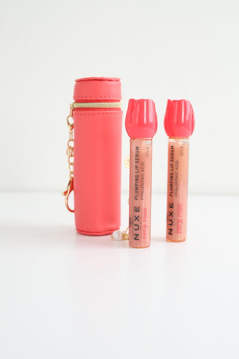 Rouge à lèvres de seconde main nuxe. 16ml. Collection Femme. Jamais Porté. Lot de deux soins lèvres Nuxe "Plumping lip serum hyaluronic acid" et trousse de rangement. Référence : 004322488.