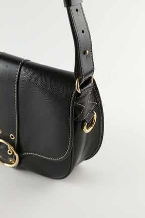 Sac à bandoulière de seconde main Lancel noir. Matière principale cuir. Longueur : 26cm. Largeur : 20cm. Hauteur : 6cm. Longueur bandoulière : 100cm. Collection Femme. Bon État. Légères traces. Référence : 041690021.