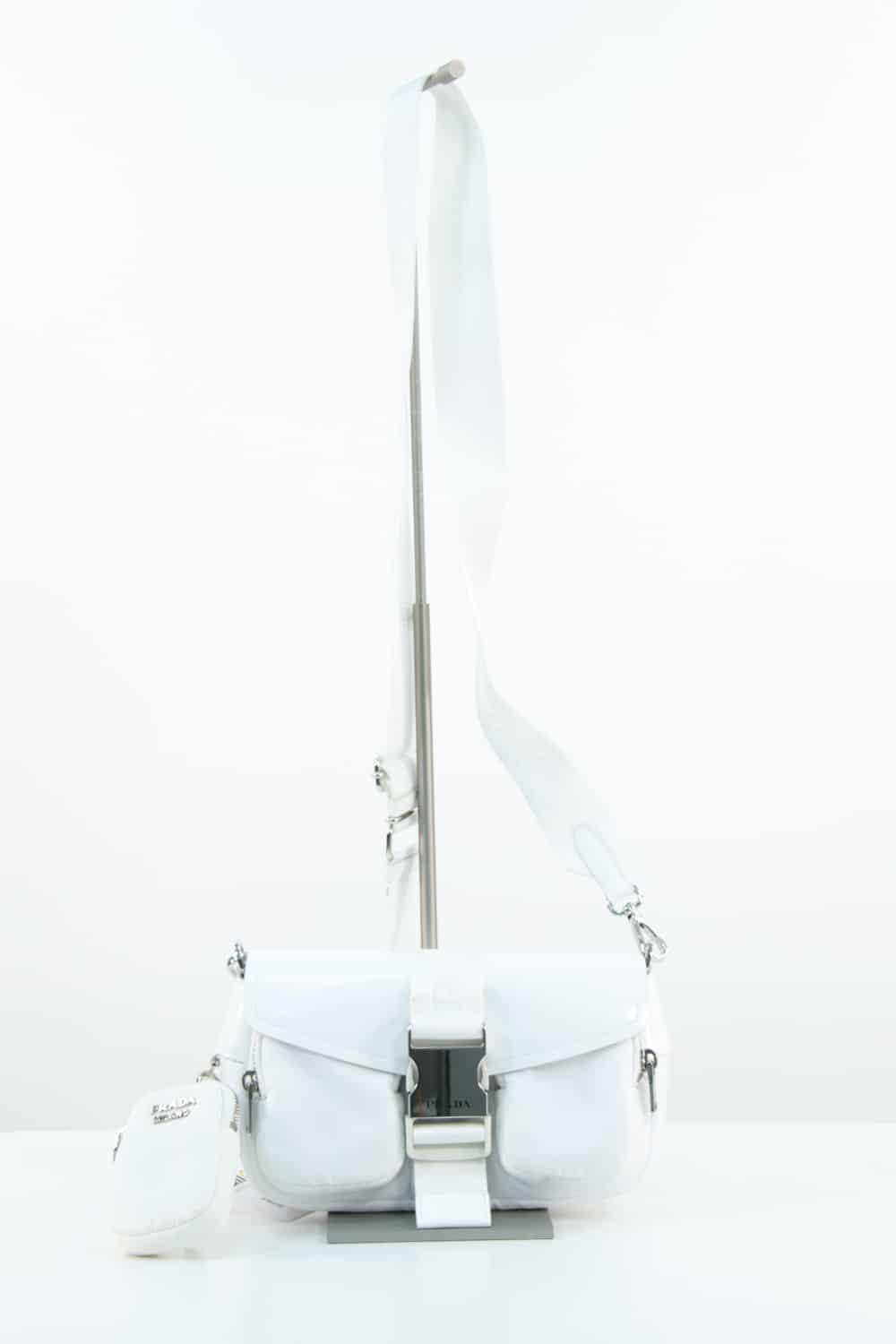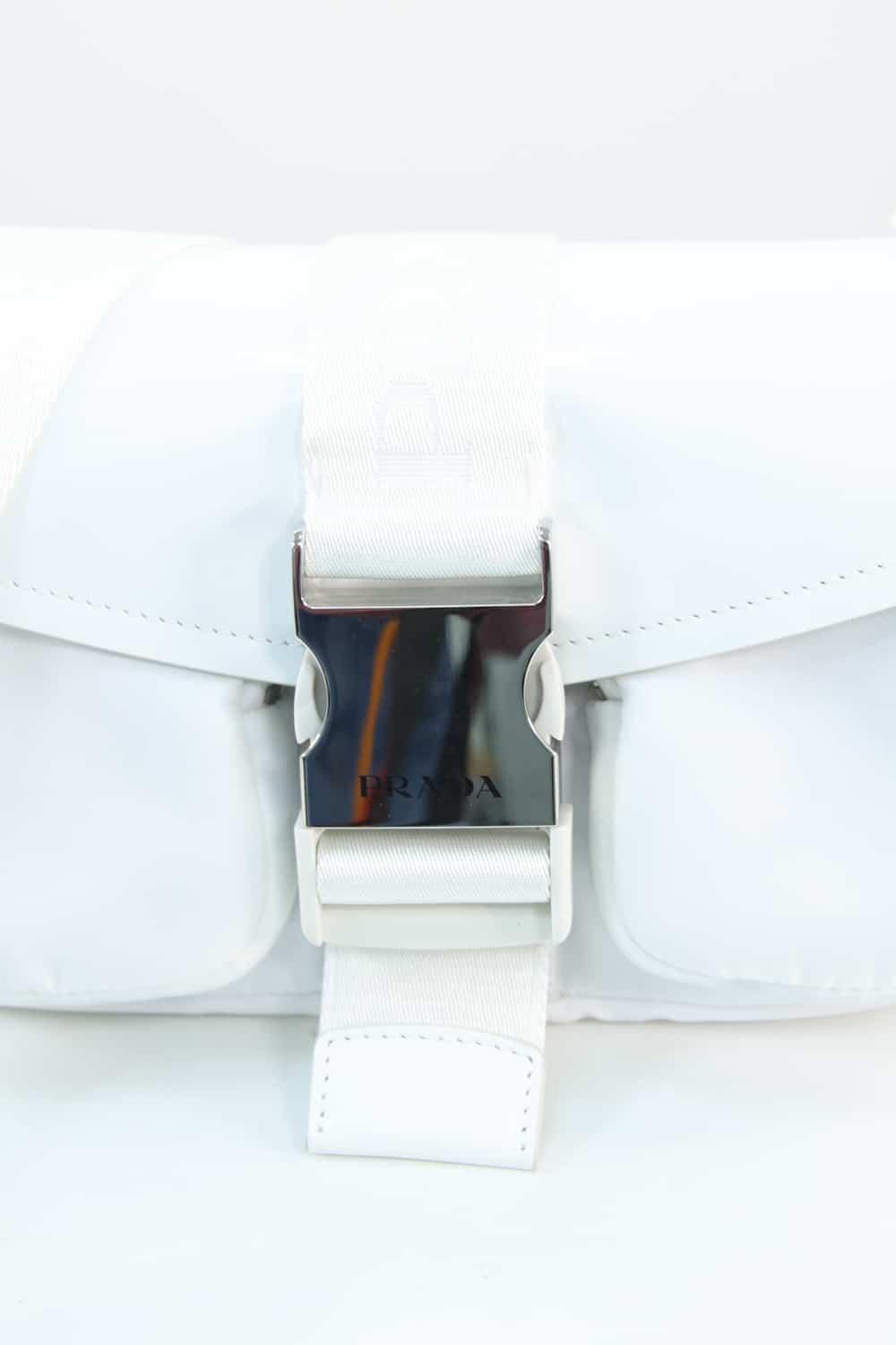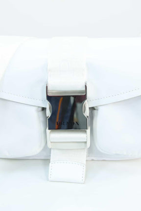 (old) Sac Prada Pocket Nylon White - Anse ajustable de 95cm - Dimensions 12.5cm x 5.5cm x 23cm - Prix boutique 1980€ - Collection actuelle de seconde main Prada blanc cuir. Taille 40. Collection Femme. Très Bon État. Référence : 627022.