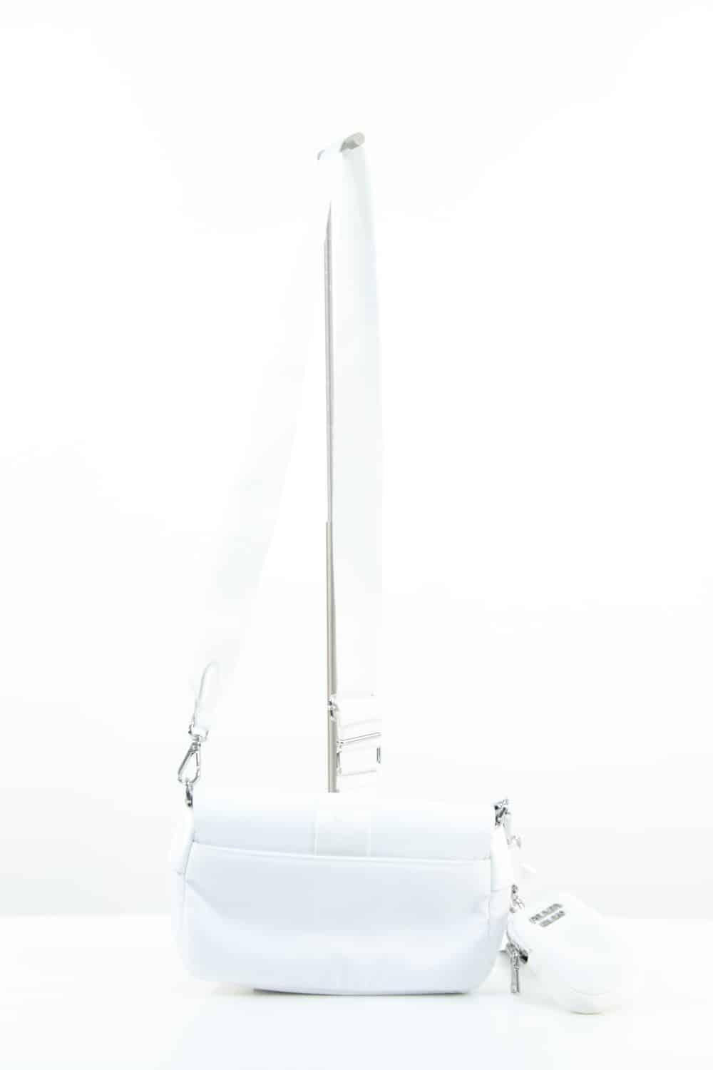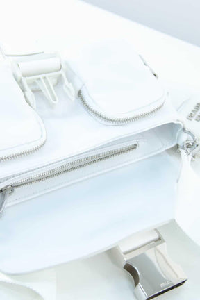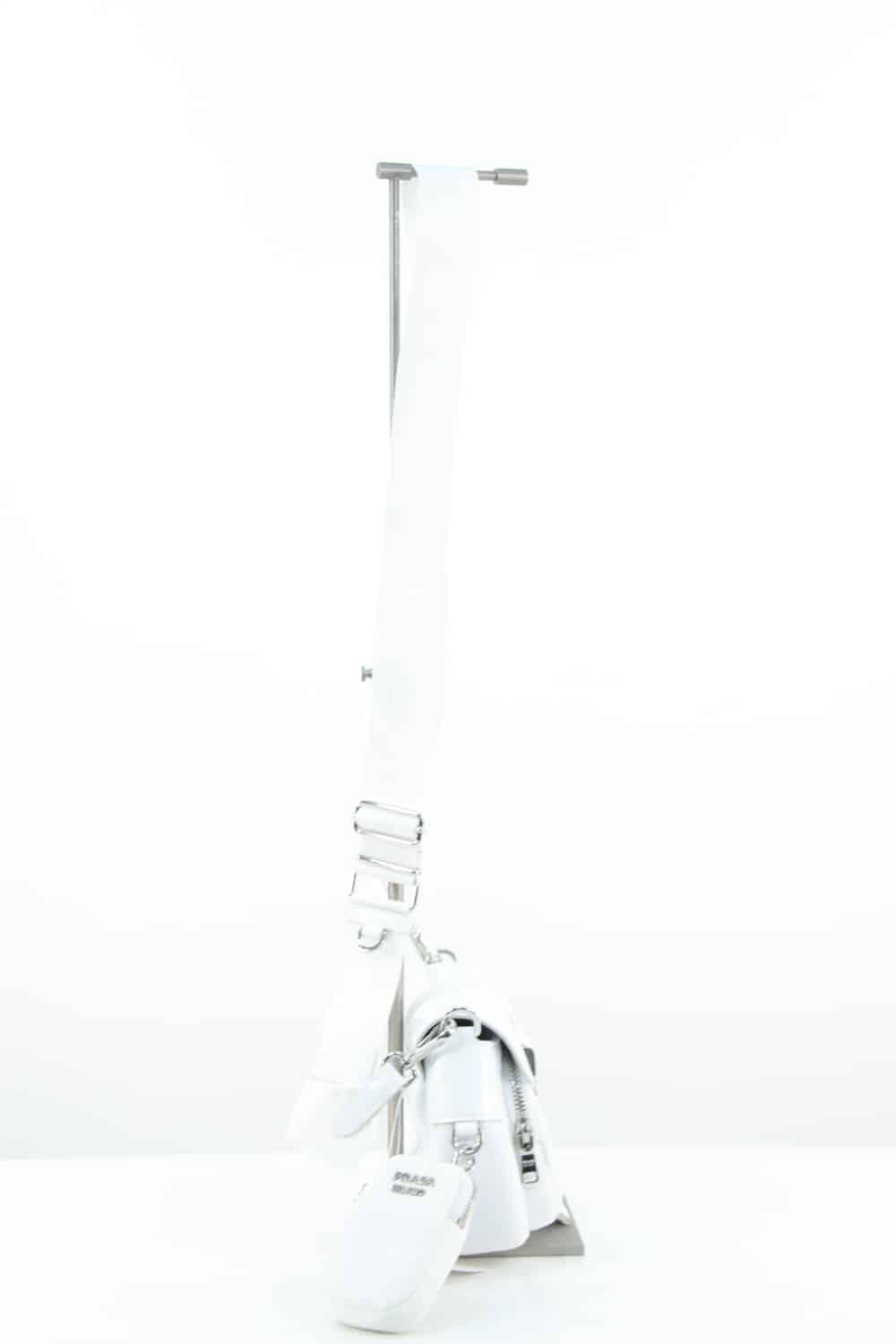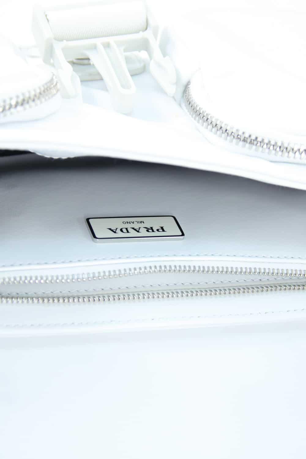 (old) Sac Prada Pocket Nylon White - Anse ajustable de 95cm - Dimensions 12.5cm x 5.5cm x 23cm - Prix boutique 1980€ - Collection actuelle de seconde main Prada blanc cuir. Taille 40. Collection Femme. Très Bon État. Référence : 627022.
