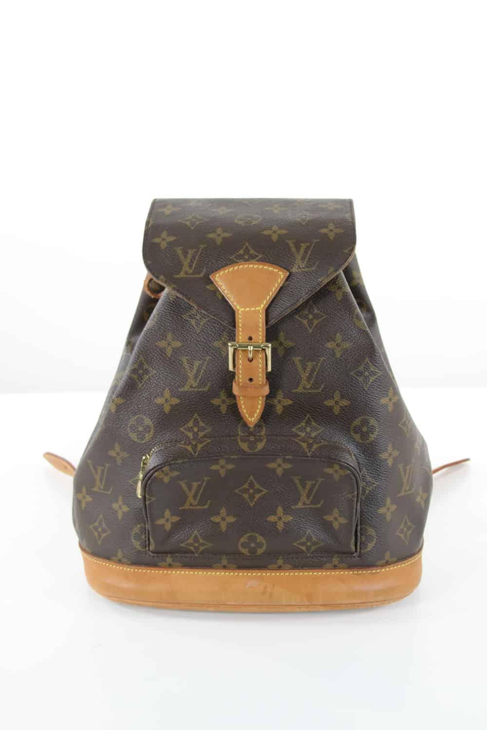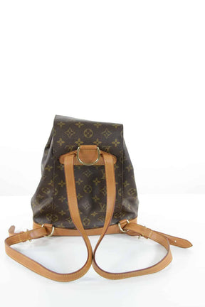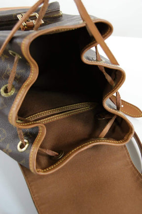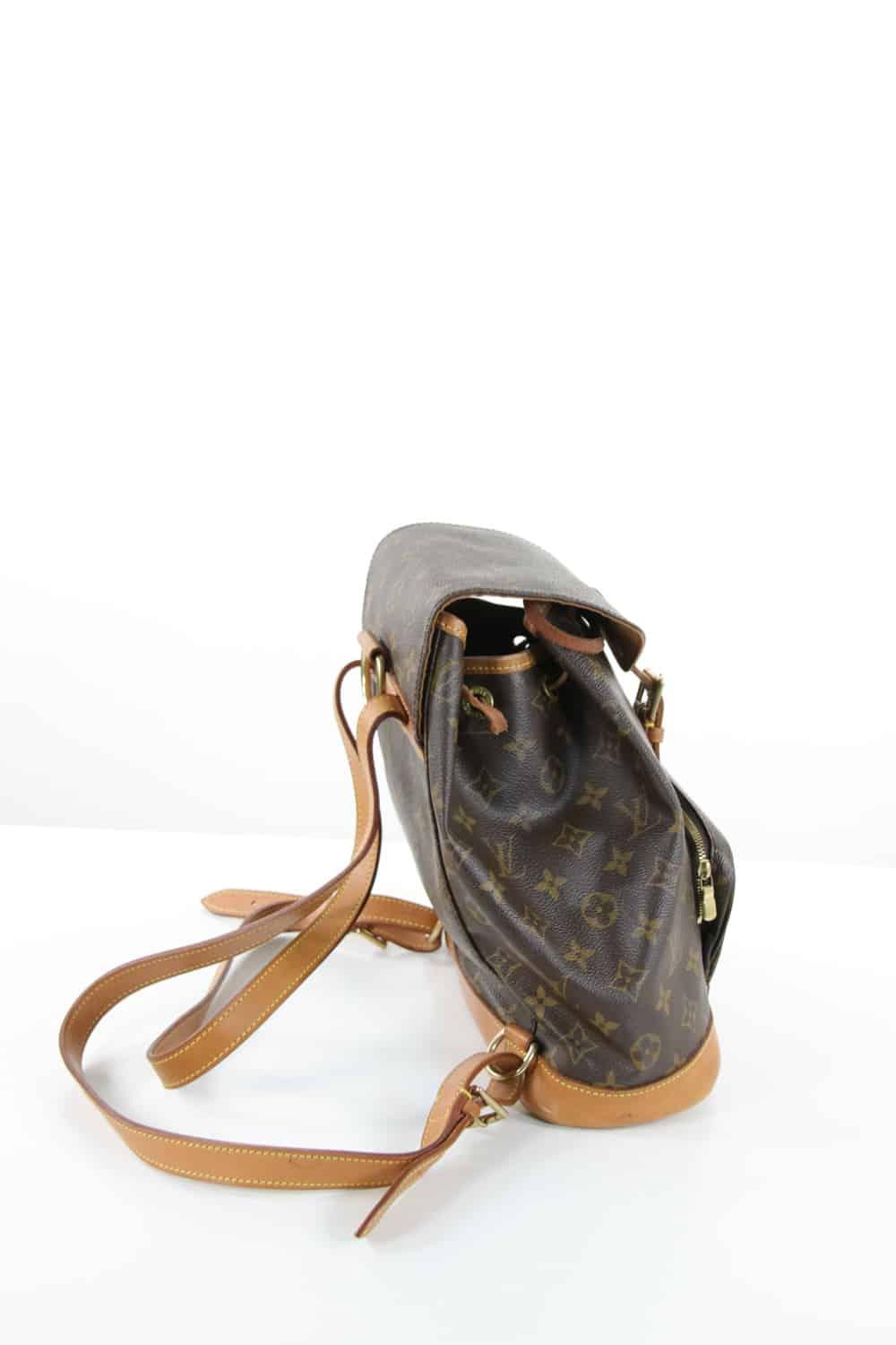 Sac à dos dans son pochon - Modèle Montsouris Canvas Monogram - Dimensions 25x25x12cm - Légères traces d'usure de seconde main Louis Vuitton marron cuir. Taille unique. Collection Femme. Très Bon État. Référence : 432389.