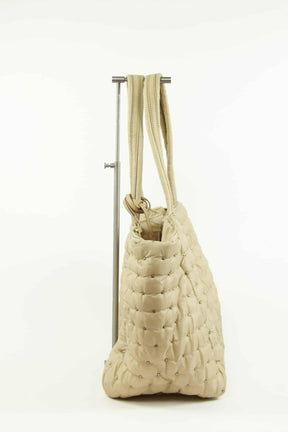 Sac matelassé à main double anse - Dimensions 43cm x 25cm x 12cm de seconde main Sonia Rykiel beige nylon. Collection Femme. Très Bon État. Référence : 715000.