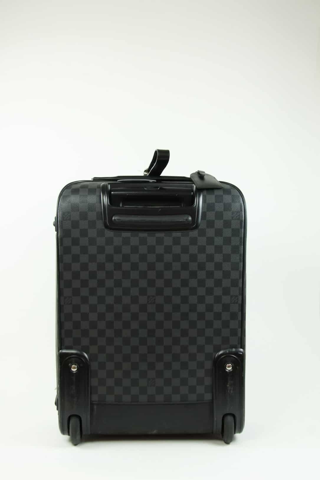 Valise Modèle Damier Graphite Canvas Pegase 55 Luggage - Dimensions 55cm x 18cm x 39cm de seconde main Louis Vuitton gris cuir. Collection Femme. Neuf Sans Étiquette. Référence : 747000.