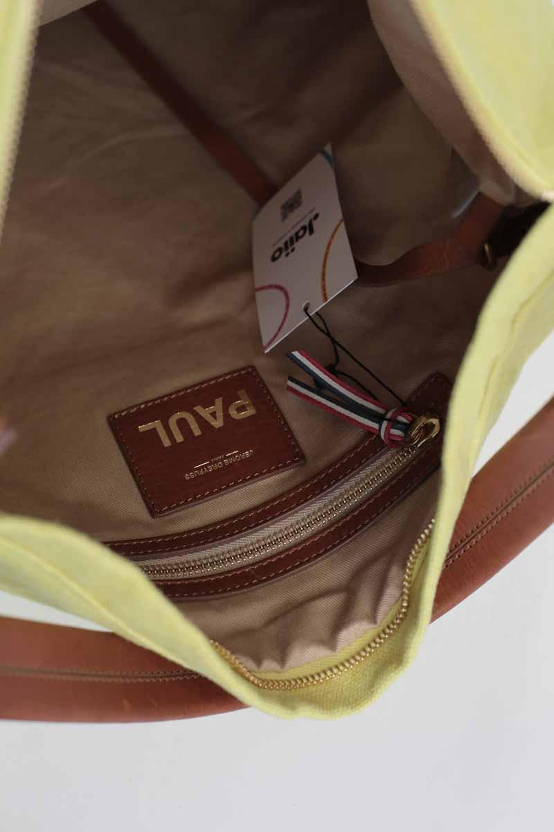 Sac porté épaule de seconde main Jérôme Dreyfuss Paul jaune. Matière principale tissu. Largeur : 35cm. Profondeur : 10cm. Hauteur : 40cm. Collection Femme. Jamais Porté. Prix boutique : 400€. Référence : 1908023.