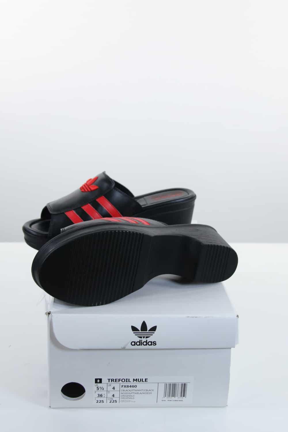 Mules à talons dans leur boîte - Modèle Trefoil Mule - Collaboration Adidas x Lotta Volkova - Pointure 36 2/3 - Prix boutique 150€ de seconde main Adidas noir cuir. Taille 42. Collection Femme. Très Bon État. Référence : 432258.