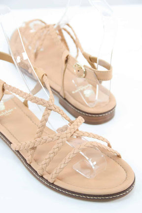 Sandales plates dans leur pochon - Talon 1.5cm de seconde main Bobbies beige cuir. Taille unique. Collection Femme. Neuf Sans Étiquette. Référence : 252034.