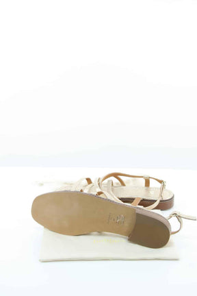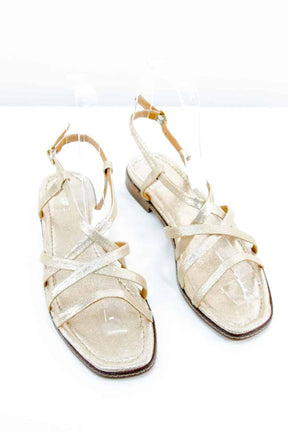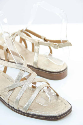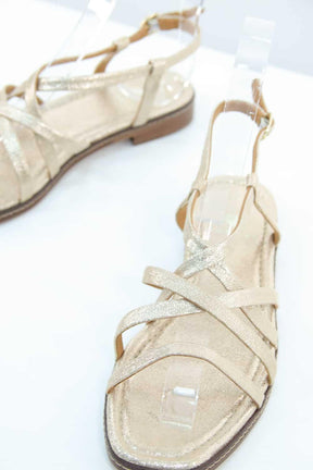 Sandales plates dans leur pochon - Talon 1.5cm de seconde main Bobbies doré cuir. Taille 39. Collection Femme. Neuf Sans Étiquette. Référence : 252036.