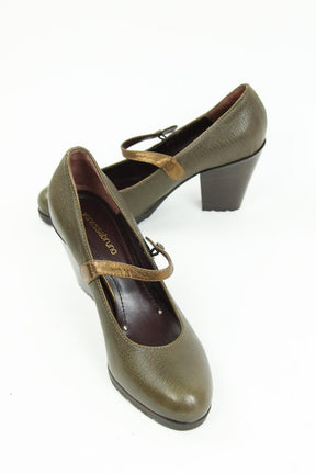 Escarpins talons 9cm de seconde main Vanessa Bruno kaki 100% cuir. Taille 39. Collection Femme. Neuf Sans Étiquette. Référence : 769016.