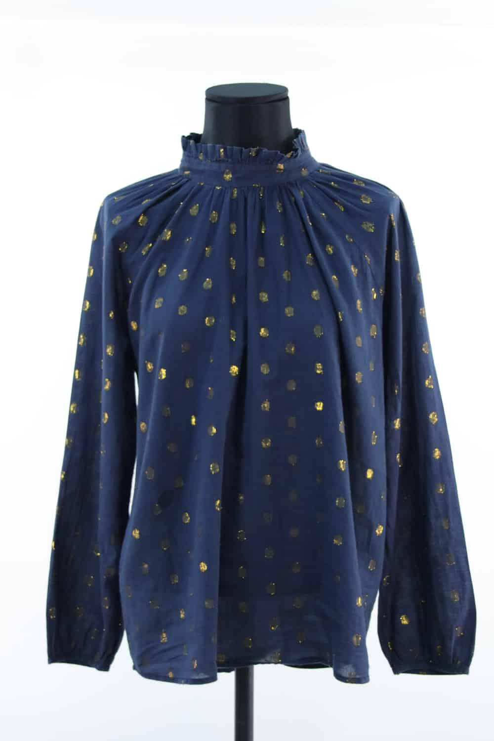 Chemisier à pois - Manches longues de seconde main Leon & Harper bleu 100% coton. Taille 39. Collection Femme. Bon État. Référence : 575011.