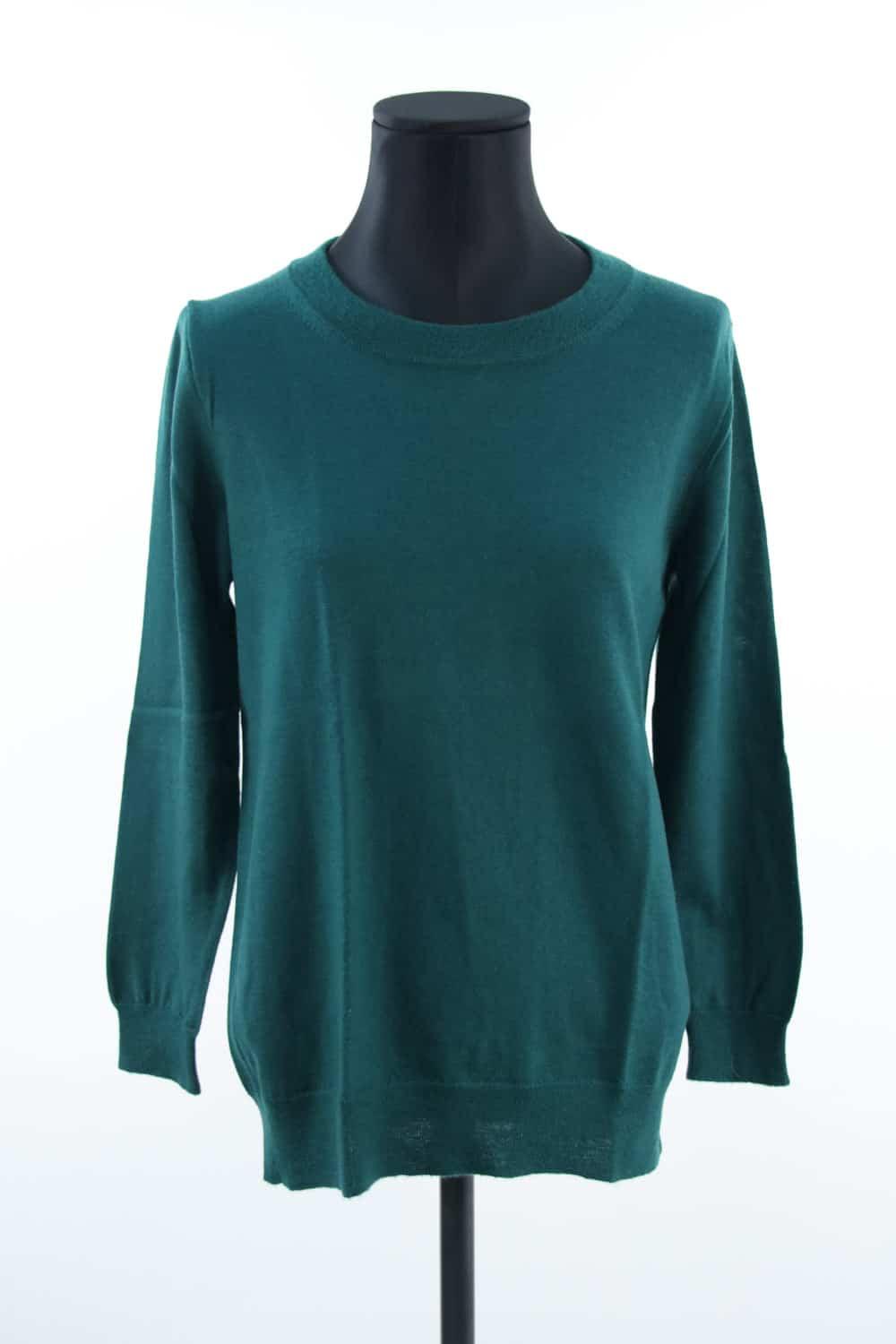 (old) Pull - Col rond - Manches longues de seconde main J.Crew vert 100% laine. Taille 38. Collection Femme. Très Bon État. Référence : 194080.