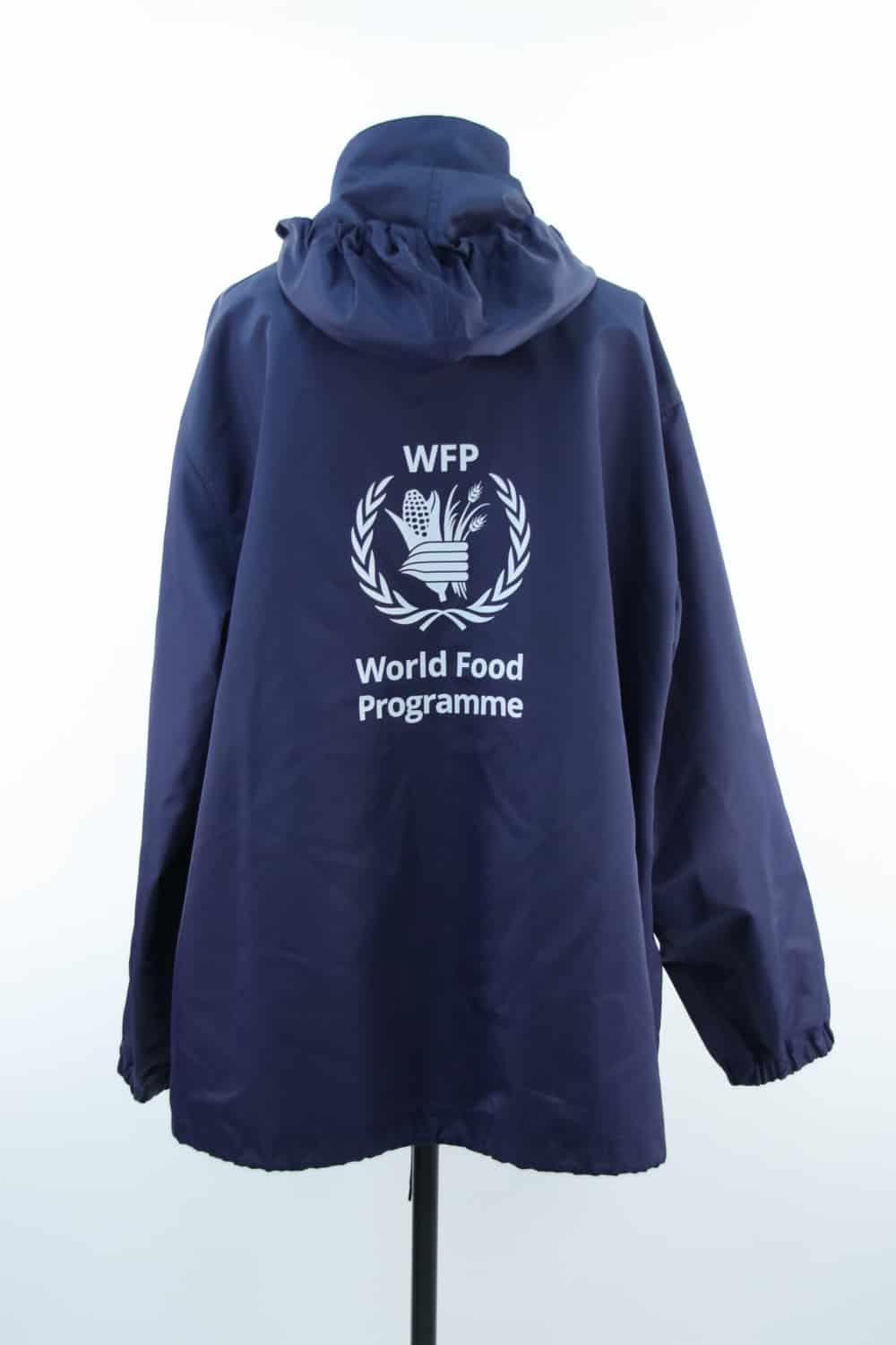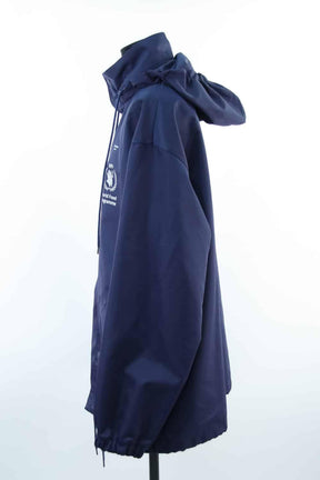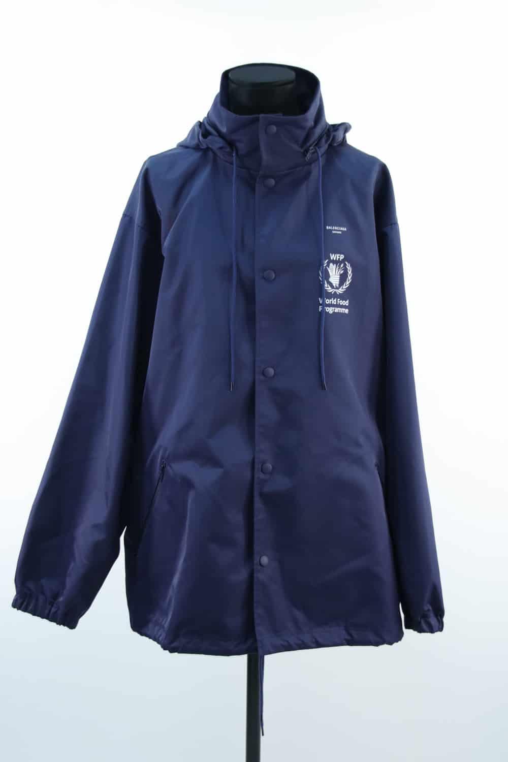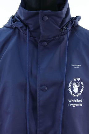 Ciré à capuche Balenciaga x World Food Programme - Manche 63cm - Longueur 80cm de seconde main Balenciaga bleu 100% polyamide. Taille 36. Collection Homme. Neuf Sans Étiquette. Référence : 622001.