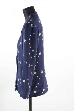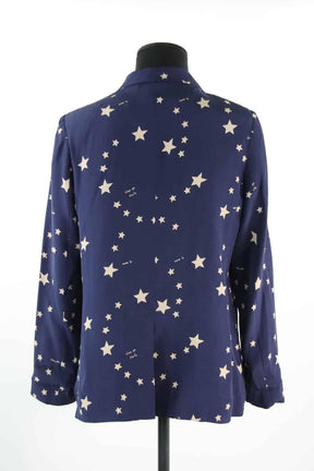 Veste imprimé étoiles - Épaules 38cm - Aisselles 44cm - Longueur 64cm de seconde main Claudie Pierlot bleu 100% soie. Taille M. Très Bon État. Référence : 514021.