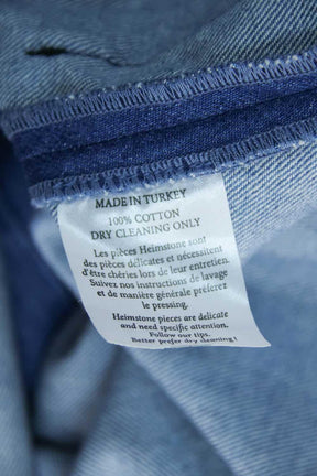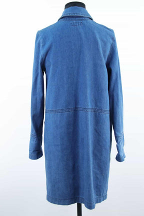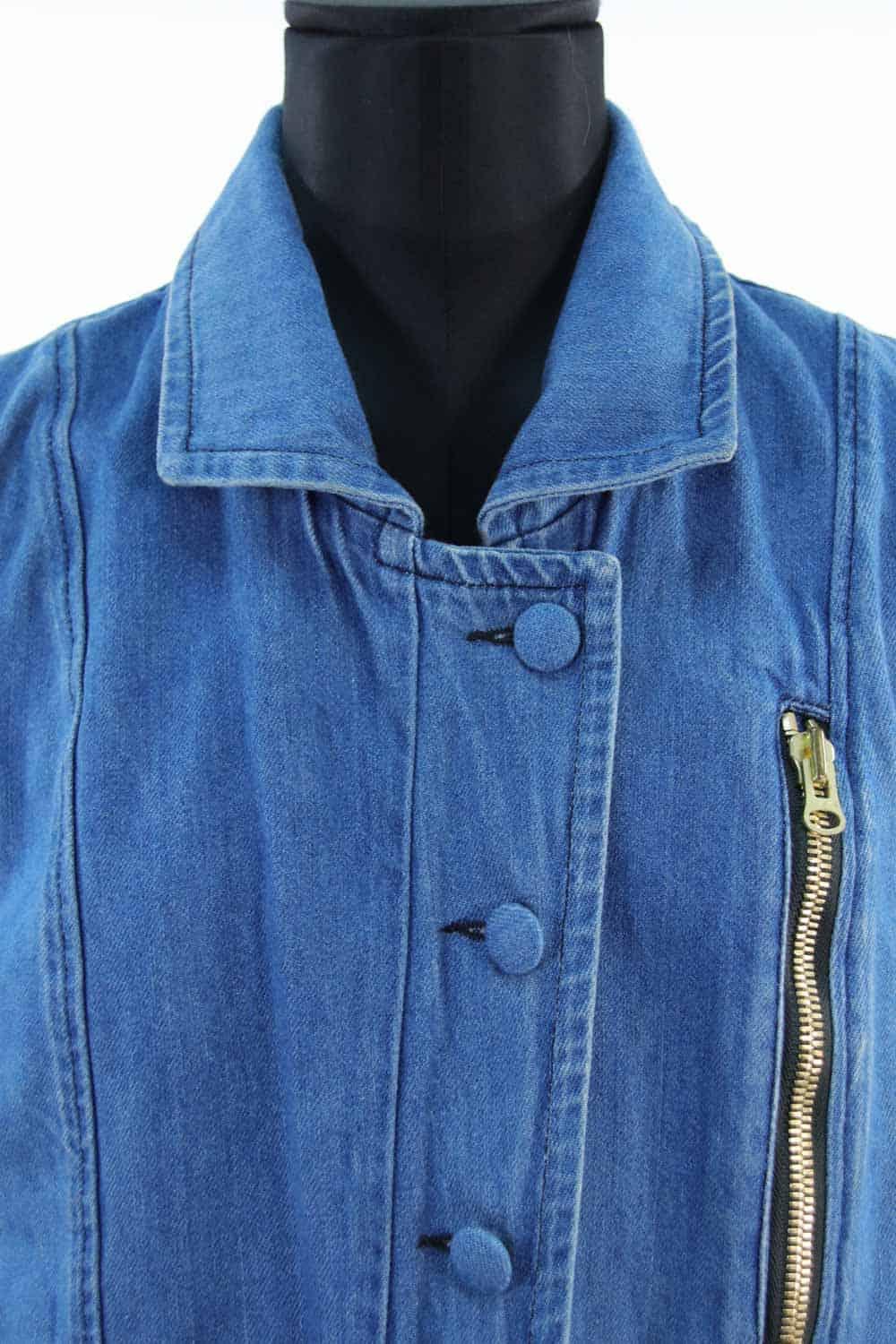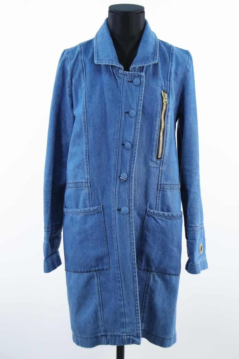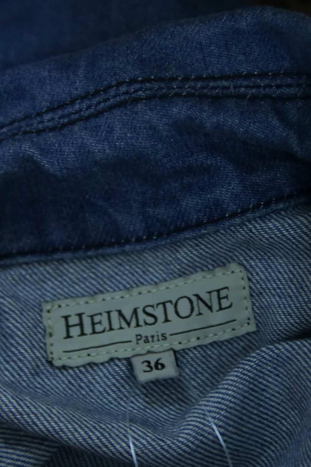 Veste en jean - Épaules 40cm - Aisselles 46cm - Manche 64cm - Longueur 92cm - Épaule gauche décousue de seconde main Heimstone bleu 100% coton. Taille 38. Collection Femme. Très Bon État. Référence : 631023.