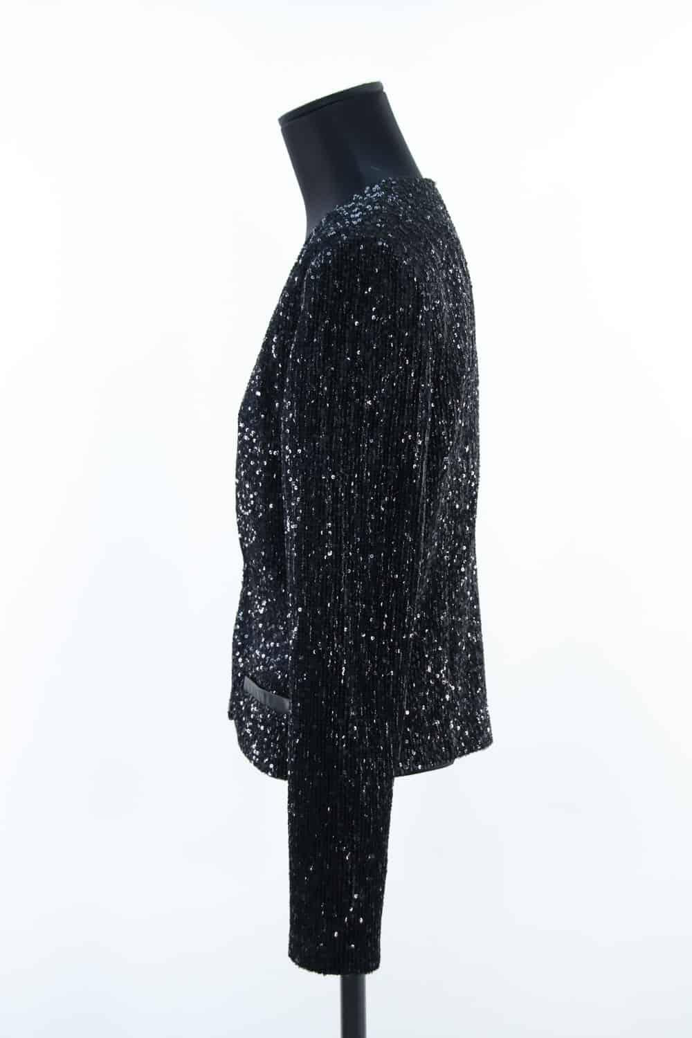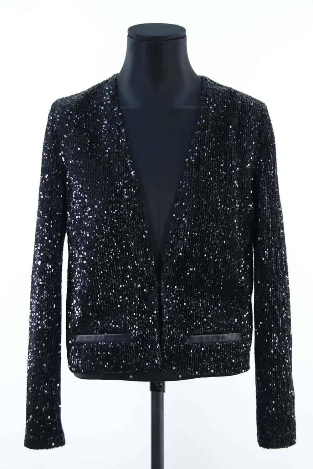 Veste à sequins - Épaules 38cm - Aisselles 48cm - Manche 61cm - Longueur 54cm de seconde main Maje noir 100% polyester. Taille 36. Collection Femme. Très Bon État. Référence : 448034.