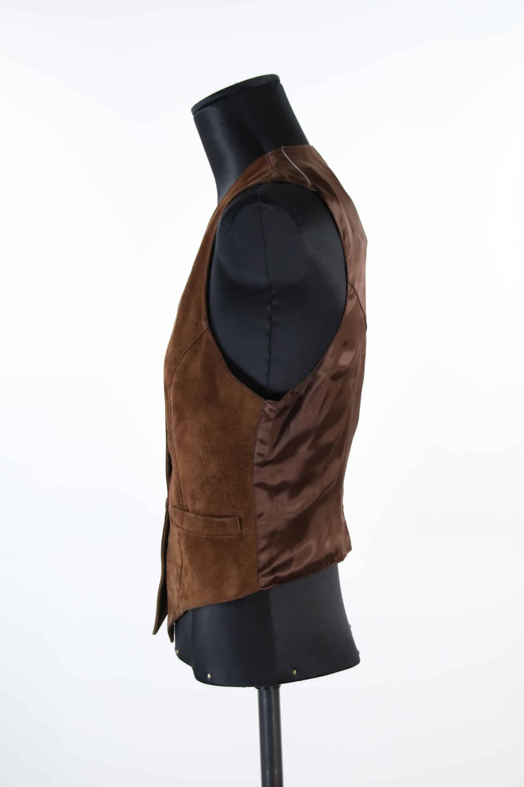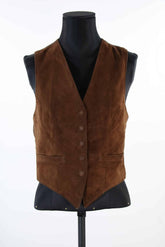 Gilet en cuir sans manches de seconde main Ventilo marron 100% cuir de porc. Taille 38. Collection Femme. Très Bon État. Référence : 719019.